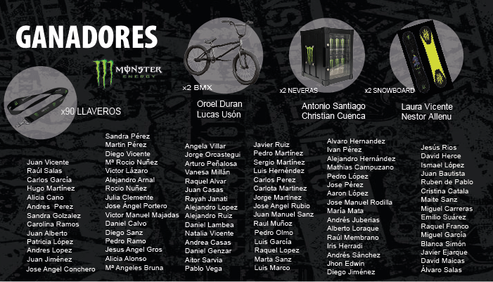 Ya tenemos los ganadores del Sorteo de Monster que hemos tenido en nuestras tiendas. Entre todos los participantes, estos son los afortunados que podrán disfrutar del premio