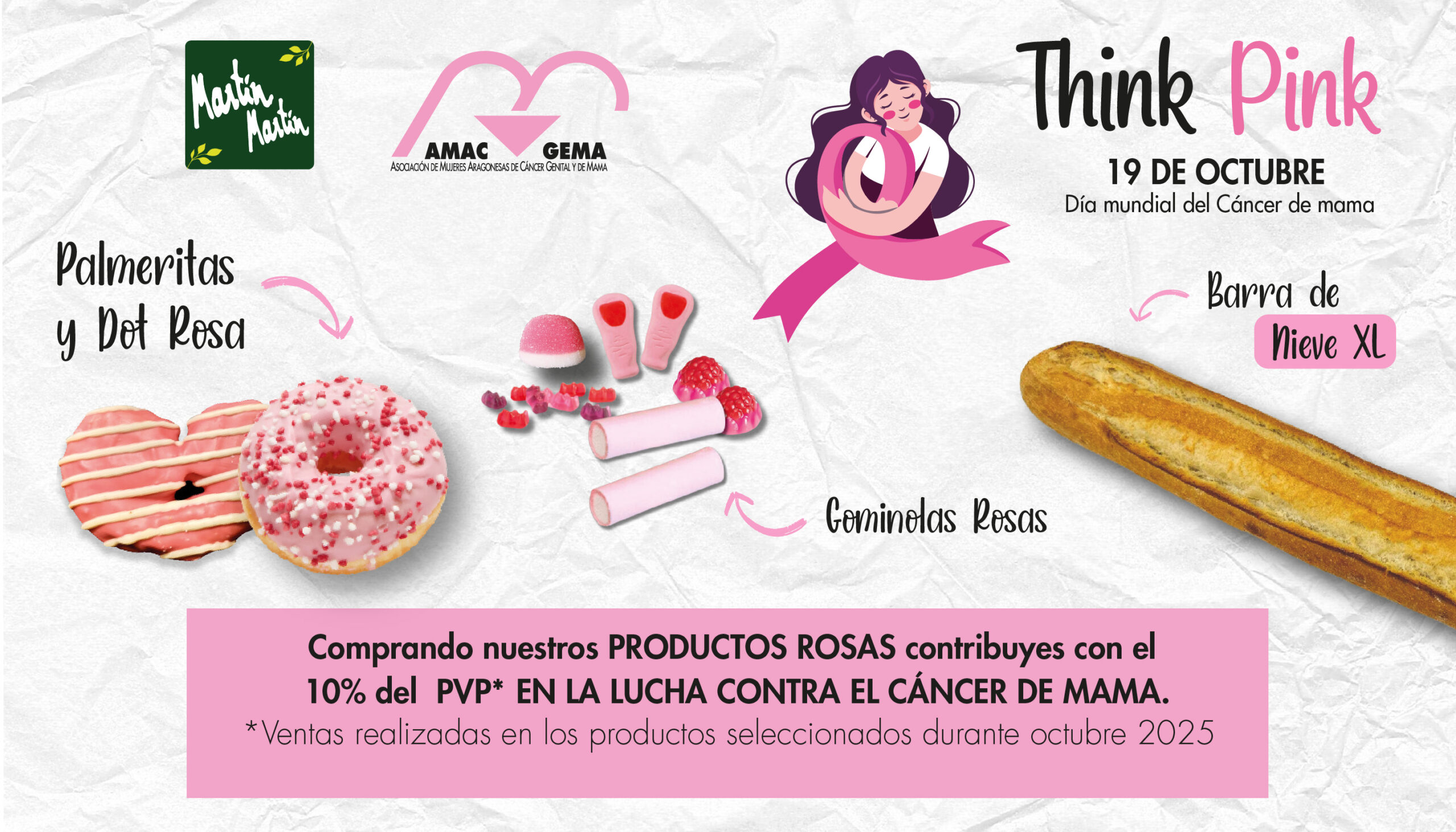 Con motivo del Día Mundial Contra el Cancer de Mama, volvemos un año más con la campaña “Think Pink” (piensa en rosa) con la que colaboramos con AMAC GEMMA (Asociación Aragonesa de Cáncer Genital y de Mama). A través de esta campaña llevamos donados más de 35.000€ para el apoyo a mujeres que sufren esta enfermedad.