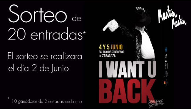¡Ya tenemos a los ganadores del sorteo de entradas para I WANT YOU BACK! Con la compra de repostería, desde Martín Martín sorteamos 10 entradas dobles para el homenaje a Michael Jackson, celebrado en el Palacio de Congresos de Zaragoza. El evento tendrá lugar los días 4 y 5 de junio. Los ganadores son: –…