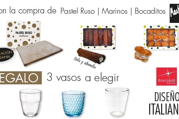¡Llévate nuestros exclusivos vasos de diseño italiano! En Martín Martín con tu compra, puedes conseguir exclusivos vasos de cristal. Ahora, hacerte con ellos es mucho más fácil. ¿Cómo puedes obtenerlos? Con la compra de nuestro Pastel Ruso, Marinos o Bocaditos puedes llevarte totalmente GRATIS 3 exclusivos vasos de diseño italiano a elegir. Estos postres están…
