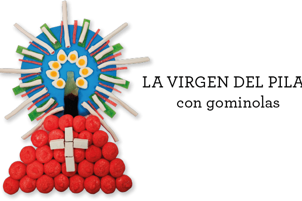 ¡Este año rinde homenaje a la Virgen del Pilar y elabora tu propio MANTO DE GOMINOLAS! En Martín Martín te proponemos que participes en nuestro CONCURSO, creando un hermoso y delicioso manto de la Virgen. Nosotros como ves en la foto, hemos realizado uno con fresones, regalices, coca-colas, lenguas de colores partidas en tiras, ladrillos……