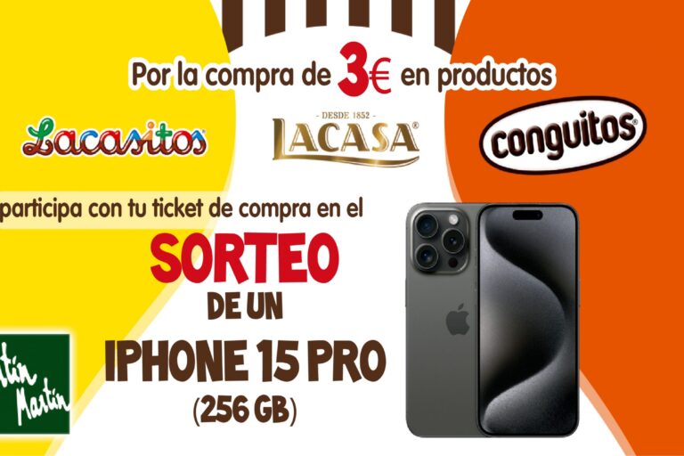 ¿Eres amante del chocolate? Si te encantan los Lacasitos…los Conguitos… este mes por la compra de 3€ en productos de Lacasa participas con tu ticket de compra en un sorteo de nada más y nada menos que… ¡ Un Iphone 15PRO de 256GB ! No te pierdas esa oportunidad de conseguir gratis el último…