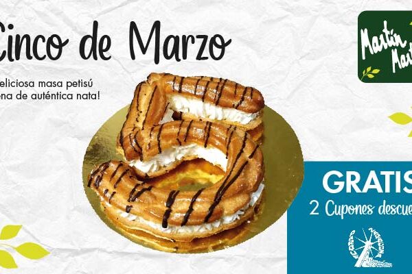 Ha llegado el momento que los zaragozanos esperábamos… ¡LA CINCOMARZADA! y en Martin Martin la hacemos DELICIOSA. En este Domingo 5 de Marzo os proponemos el mejor postre para celebrar con la familia o amigos: nuestro «CINCO». ¿Cómo es el postre 5 de Martin Martin? De masa petisú Relleno de auténtica nata Elaborado de…