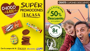 Empezamos un mes de marzo muyyyy dulce donde los chocolates de Lacasa serán los protagonistas. Ademas de SUPERPROMOCIONES , podrás conseguir con la compra de 3€ de productos Lacasa GRATIS CUPONES DESCUENTO para el Parque de Atracciones de Zaragoza. ¿En que consiste los descuentos? Son descuentos del 50% en tu entradas respecto al precio…