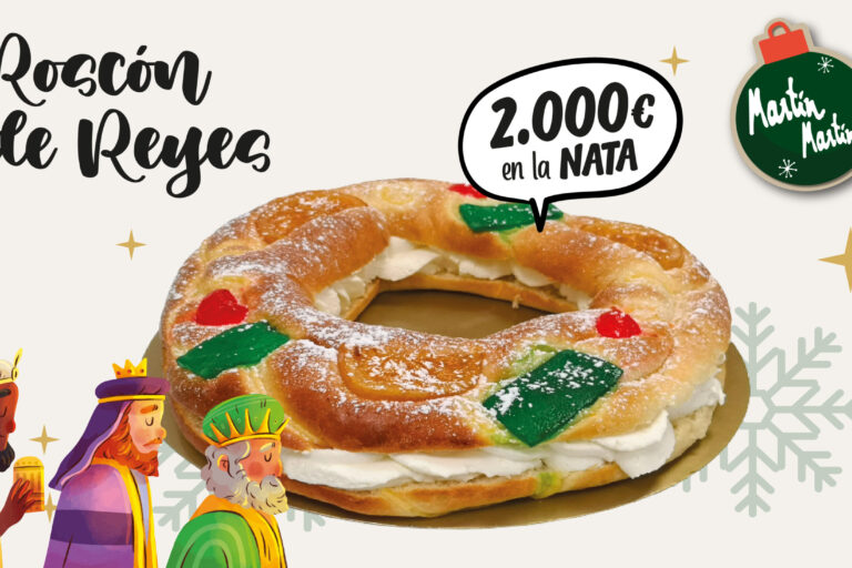 Ya está aquí la Navidad y no puede faltar el Roscón de Reyes de Martín Martín. Disfruta del postre tradicional más delicioso y ahora con ¡SORPRESÓN!. Dentro de nuestros roscones de reyes puedes conseguir hasta 1.000€ de premio en metálico. Sí,sí! Date un capricho, comparte con los tuyos y llévate tu premio. Pero……