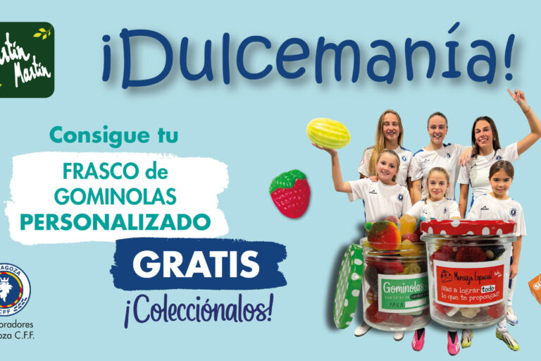 Tu frasco de gominolas gratuito En Martín Martín inauguramos el 2025 endulzando vuestros días con nuestra sección más dulce… ¡las gominolas y los caramelos como joyas de la corona! Teniendo de protagonistas de la campaña a nuestras jugadoras del Zaragoza Club Futbol Femenino como no podría ser de otra forma. Con la compra de estos dulces…